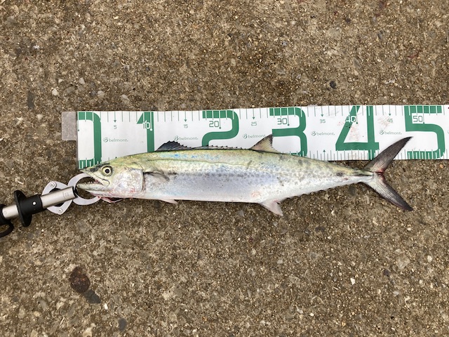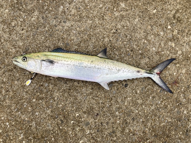 2025.10.10南港魚つり園護岸でサゴシ(サワラ幼魚)を釣る