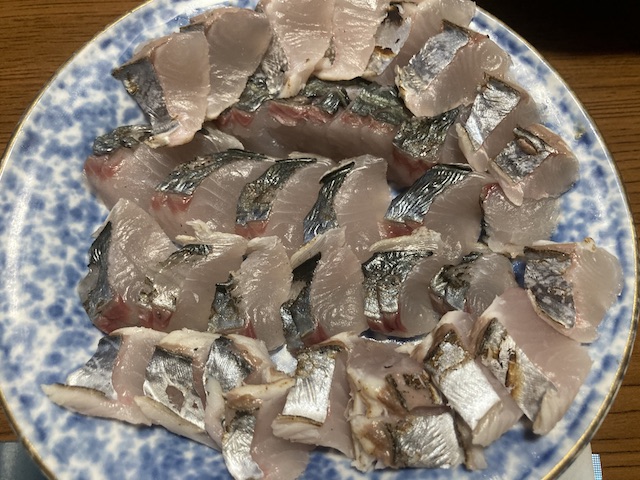 釣ったサゴシを持ち帰り3枚おろし、背と腹に切り分けてサクに、