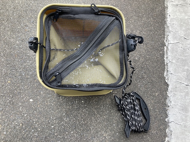口はメッシュなので口をチャックで閉じた状態でも水汲みが可能。金属部品が使われていないので海水使用も問題なしと、釣り人の欲しかったを実現している商品です。