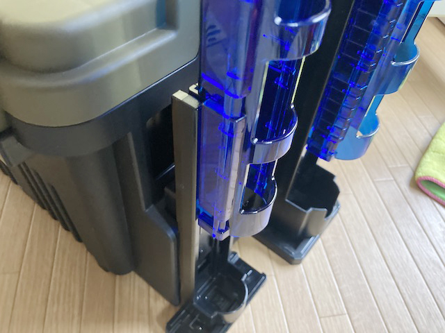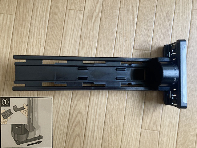 装着可能の側面へ、スタンド本体のフックを差し込みます。