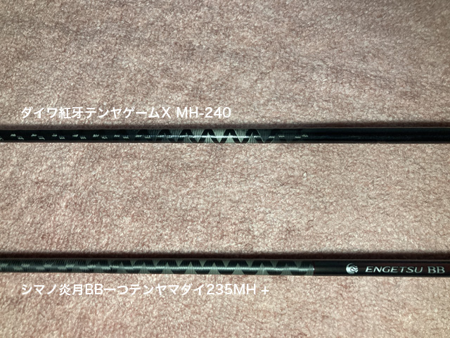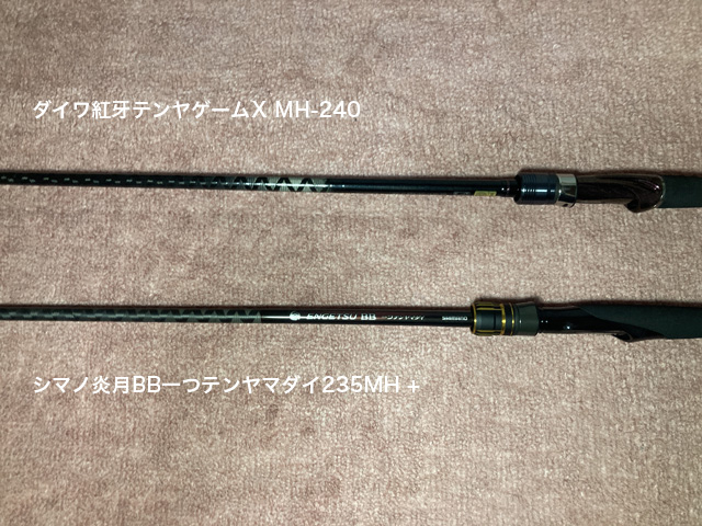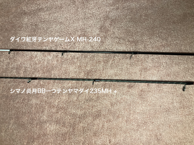 シマノ炎月BB一つテンヤマダイ235MH +、ダイワ紅牙テンヤゲームX240-MHの比較