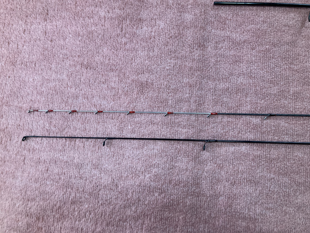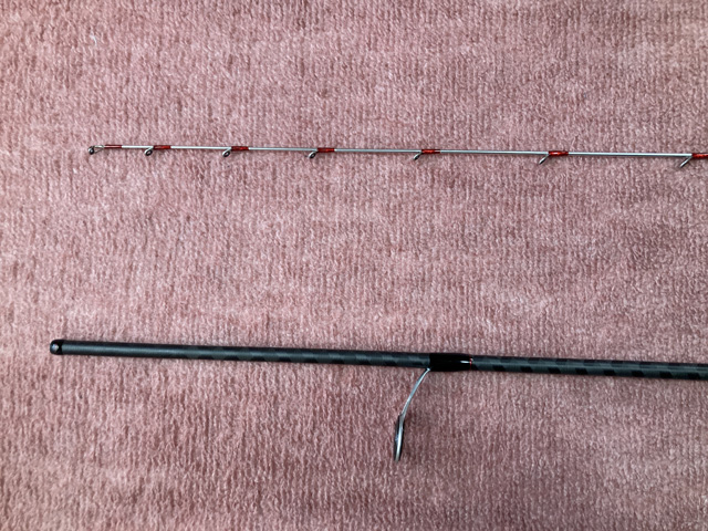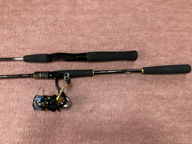 私が前回の一つテンヤ釣行で甘鯛2匹を釣った時に使用した安もんバスロッドとの比較。