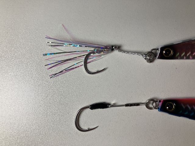 サゴシスペシャル(ブルピン)はアシストフックのラインがワイヤーになっているのですが、飾りのヒラヒラが無くなってます。