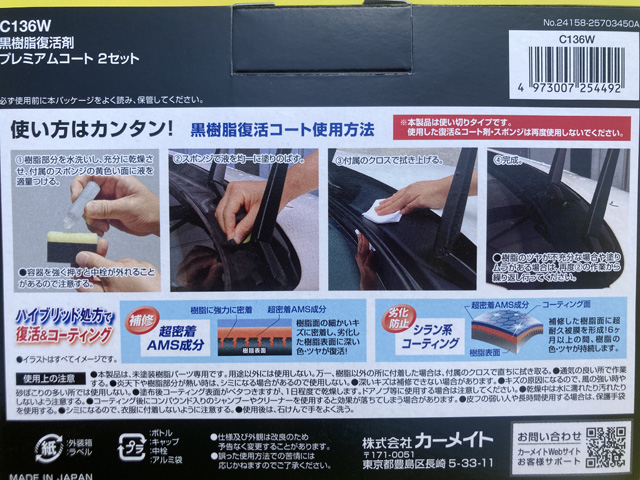 数日前に黒樹脂復活を使いZC33Sスイフトスポーツの劣化した黒樹脂部分を復活させたんですが、1個じゃ全黒樹脂をカバーできなくて追加注文ポチッとな!