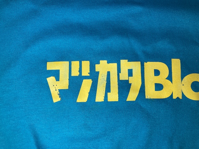 この黄色のアイロンプリントシートが熱を加えすぎると色が飛ぶんですよね、なのでURLプリントは所々ベースのTシャツの色と同化する感じになってしまいました。
