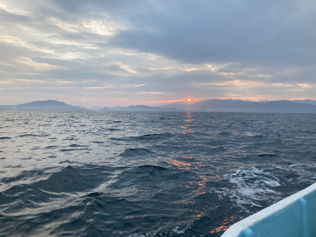 港を出て最初のポイントに到着すると朝日が綺麗でした。