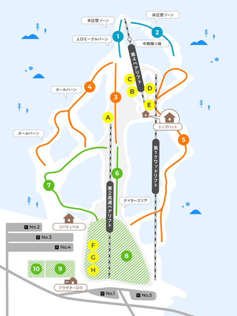 稼働リフトは3本で一番上のリフトのコースはコブしか空いてないので上級者やコブマニアの方以外は乗らない方が賢明です。